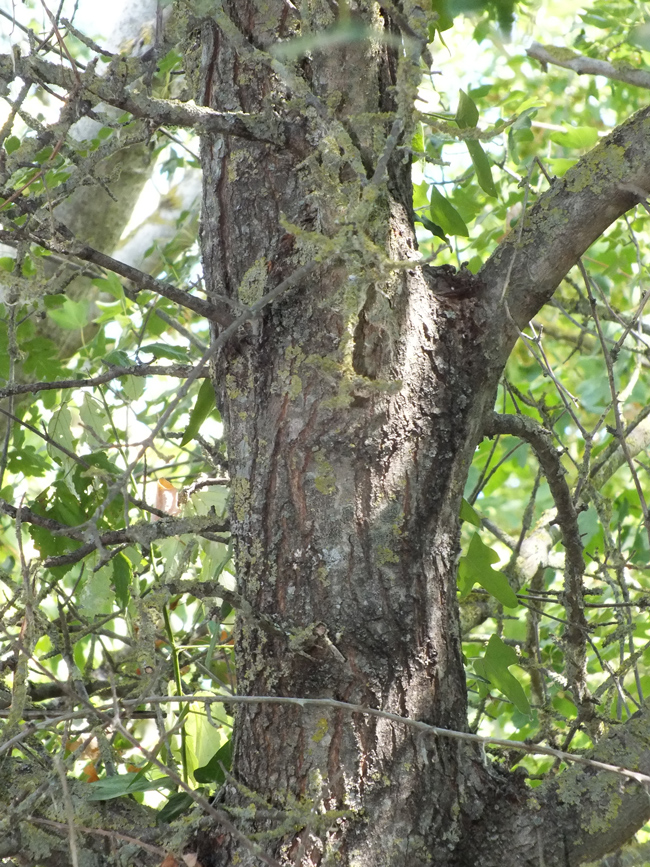 Fusto di Pyrus communis pyraster di circa 20 anni, Orto botanico di Casa Archilei a Fano, agosto 2012