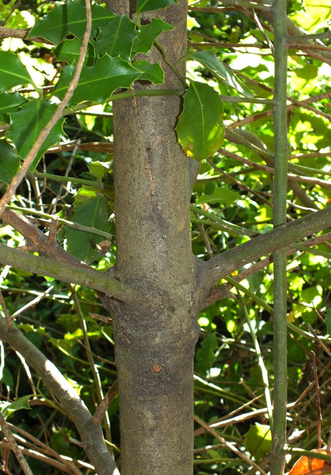 Fusto di Ilex aquifolium, Orto botanico di Casa Archilei a Fano, agosto 2012