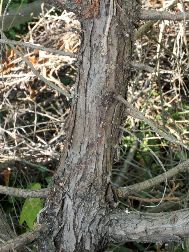 Fusto di Juniperus communis di 20 anni,Orto botanico di Casa Archilei a Fano, agosto 2012
