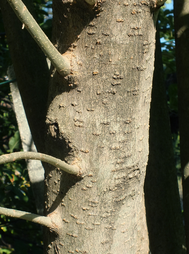 Fusto di Sorbus domestica di circa 25 anni, parco urbano a Fano, luglio 2012