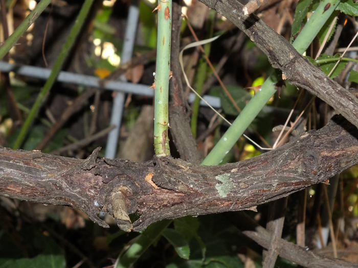 Fusto di Rosa sempervirens, Orto botanico di Casa Archilei a Fano, agosto 2012