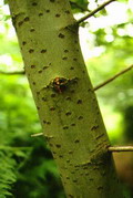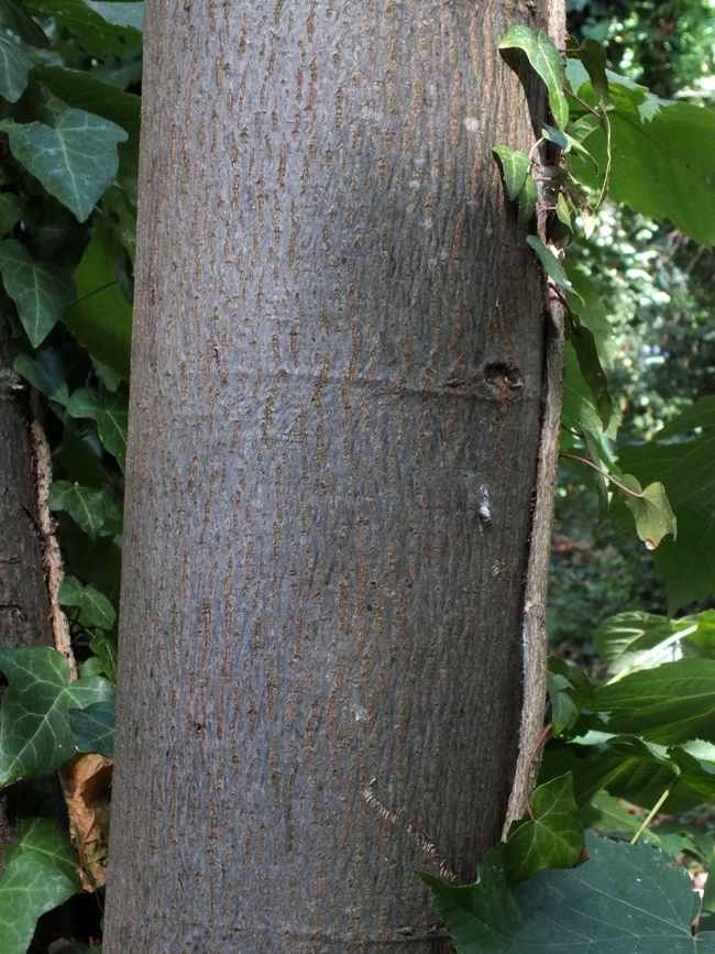 Fusto di Alnus cordata di circa 20 anni, Orto botanico di Casa Archilei a Fano, agosto 2012