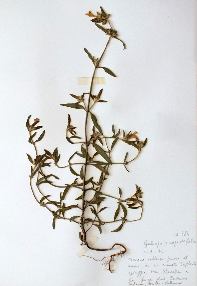 Galeopsis angustifolia (Erbario L. Poggiani), luoghi aridi del Metauro a Fano, luglio 1986