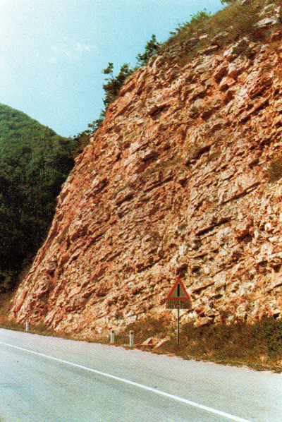 Gola del Bosso, loc. Eremita, deformazione sinsedimentaria (slump) nella Formazione della Corniola (da: DIDERO e MATTEUCCI 1977)