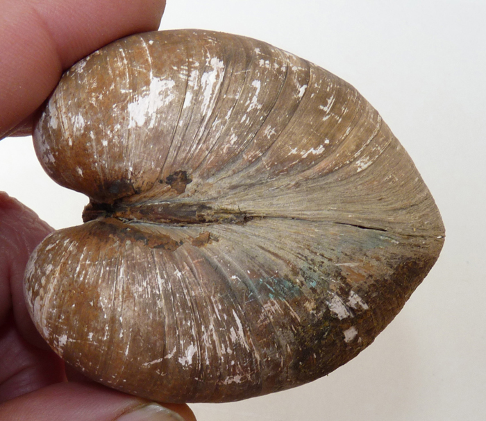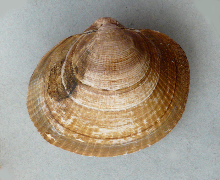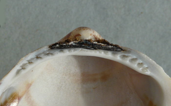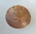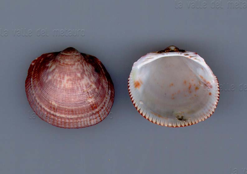 Glycymeris insubrica di 39 mm (cerniera valva sinistra), spiaggiata a Fano, dicembre 2001