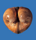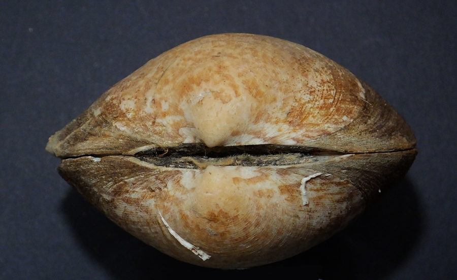 Glycymeris glycymeris di 70 mm di altezza visto dal lato umbonale, rinvenuto con le valve articolate, di provenienza ignota