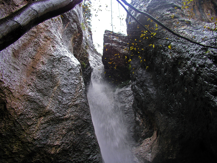Gola del Furlo all'estremità di NE, la marmitta d'erosione durante uno degli occasionali periodi di attività del torrente, dicembre 2004