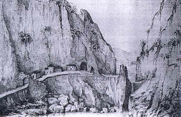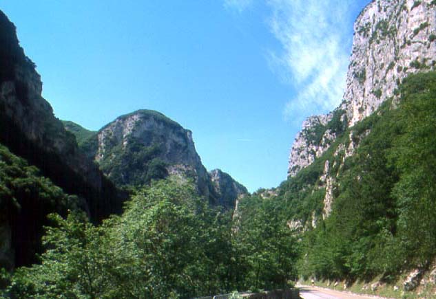 Gola del Furlo, parete del M. Pietralata e a destra tratto della galleria romana, 1995