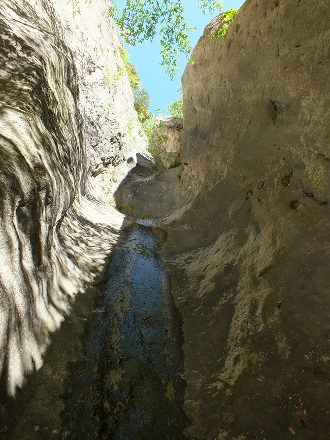 Gola del Furlo all'estremità di NE, marmitta d'erosione scavata da un torrentello laterale, maggio 2012