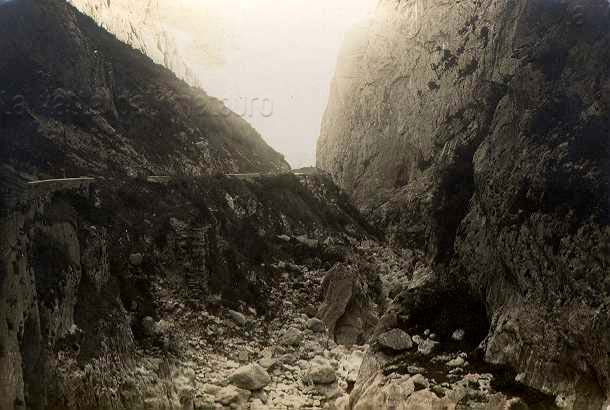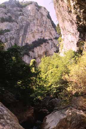 Gola del Fosso della Foce nella Scaglia Rossa, luglio 1996. E' anche visibile parte del Ponte a Botte