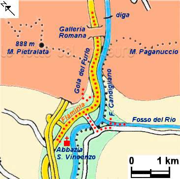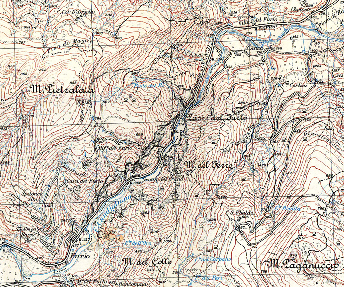Gola del Furlo. Carta IGM 1:25.000 116 I N.O., rilievo del 1952 (autorizz. IGM n. 4877 del 2-11-1998)