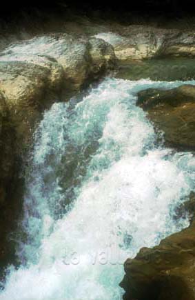 Gola del Bosso all’altezza di loc. Eremita, giugno 2007. Qui il corso d’acqua attuale costeggia la strada principale; i due avvallamenti visibili nella parte centrale della foto e separati da un rilievo allungato, rappresentano altrettanti paleoalvei (Pleistocene superiore-Olocene antico ?)
