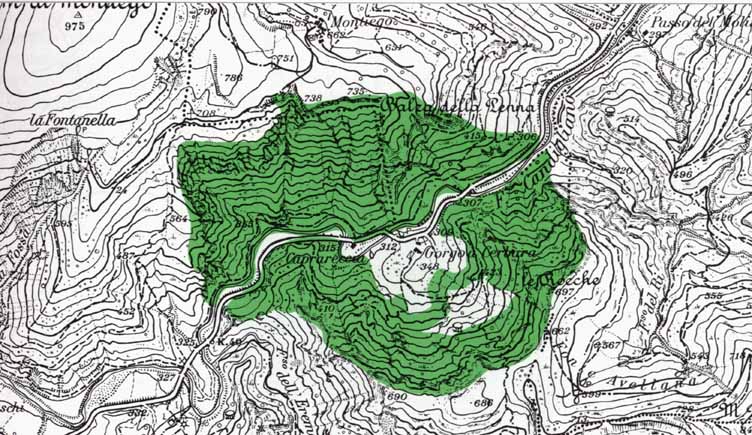 Gola di Gorgo a Cerbara, emergenza botanico-vegetazionale BA, carta 1:25.000 (da BALLELLI e PEDROTTI 1992)