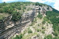 Gola di Gorgo a Cerbara, pendio gradonato in loc. Casa Caprareccia, giugno 2012. Dall'alto verso il basso: primo gradino roccioso Calcari Diasprini, secondo gradino roccioso Calcari a Posidonia, entrambi evidenti rispetto al verde del bosco