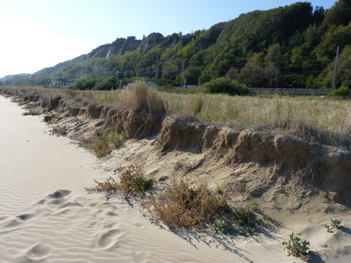 Gradino di erosione dell'arenile consolidato a Baia del Re (Fano), ottobre 2011