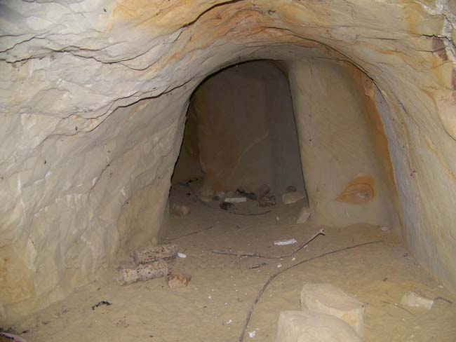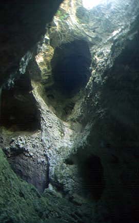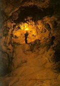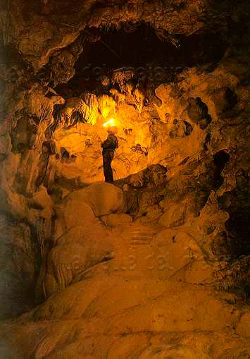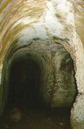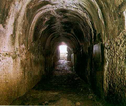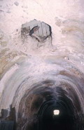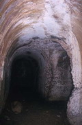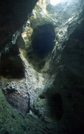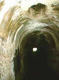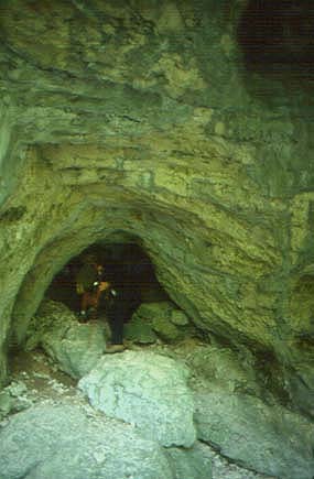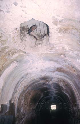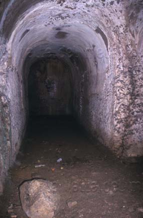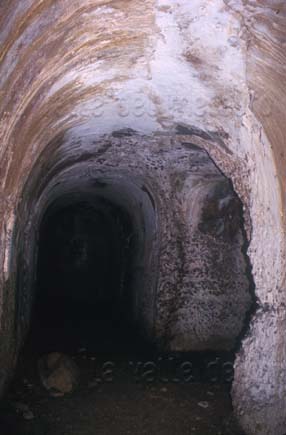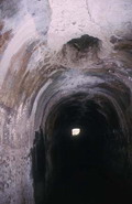 Grotta di S. Paterniano, zona di S. Angelo in Ferriano (Fano), agosto 1982. Ramo principale; in alto il foro di aereazione chiuso da tavole, in fondo l'ingresso