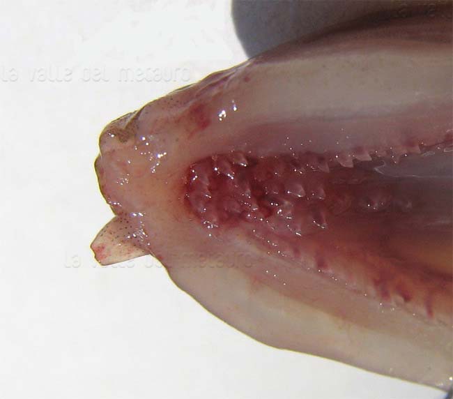 Grongo, particolare della mascella superiore. Pescherie di Fano, luglio 2006