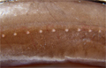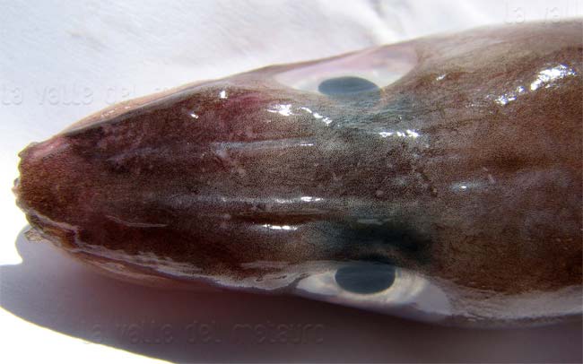 Grongo di 45 cm, linea laterale con pori a macchie chiare. Pescherie di Fano, giugno 2006