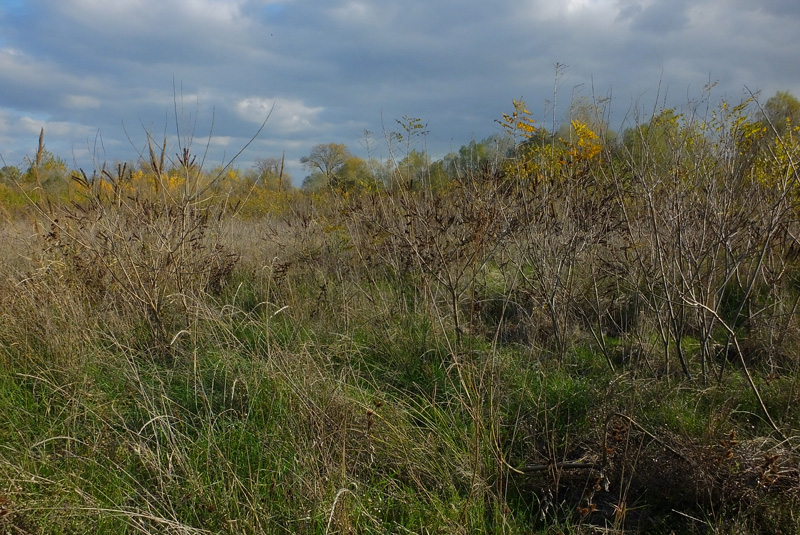 Gruppo dell'arbusto Amorpha fruticosa, incolto erboso lungo il F. Metauro a 4 km dalla foce, novembre 2018