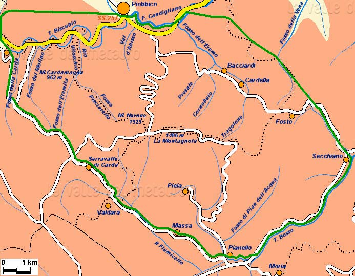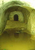 Grotta di M. Alto (M. Giove a Fano) presso Casa Adanti, aprile 2007. La grotta, scavata nell'arenaria, presenta una galleria principale e alcuni diverticoli; quello più lungo, dopo una curva, ha un secondo ingresso, più piccolo e ostruito da Rovo ed Edera