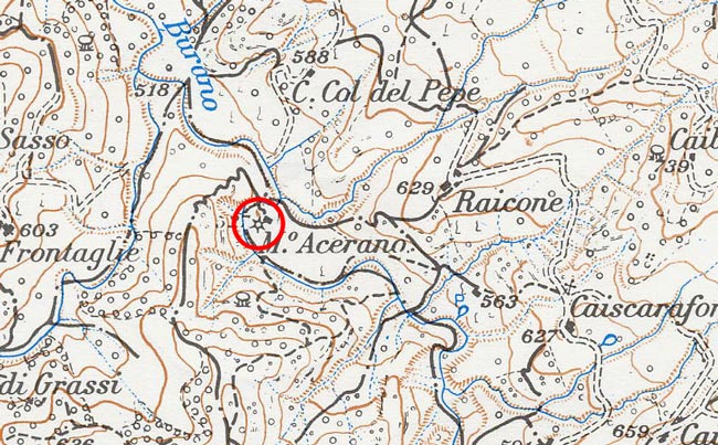 Gubbio (Provincia di Perugia): Molino Acerano. Carta top. Reg. Marche 1:25.000 116 – III (autorizz. Ufficio Cartografia e Inform. Territoriali Reg. Marche del 13-3-1999 e aut. IGM n. 4877 del 2-11-1998)