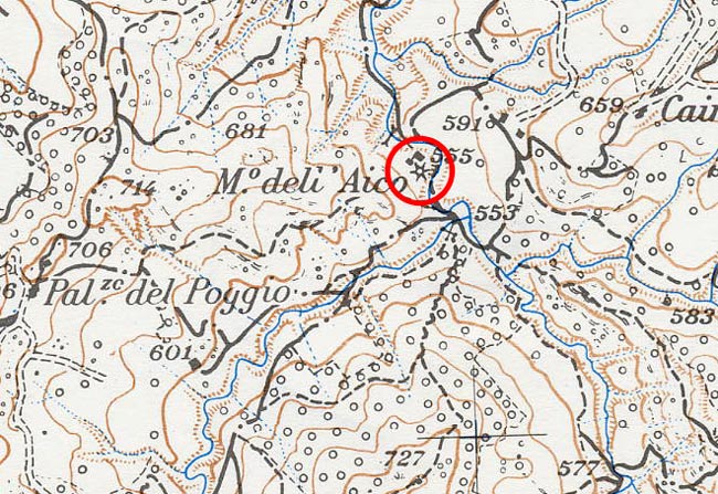 Gubbio (Provincia di Perugia): Molino dell’Aico. Carta top. Reg. Marche 1:25.000 116 – III (autorizz. Ufficio Cartografia e Inform. Territoriali Reg. Marche del 13-3-1999 e aut. IGM n. 4877 del 2-11-1998)