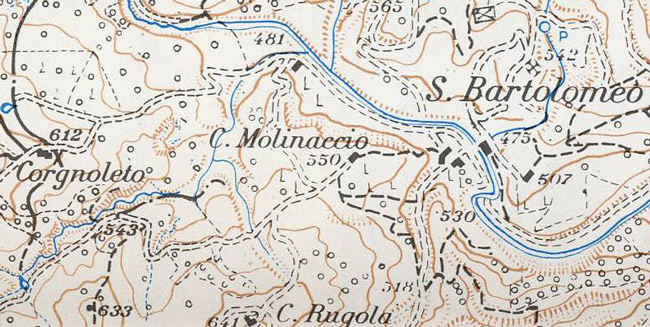Gubbio (Provincia di Perugia): C. Molinaccio. Carta top. Reg. Marche 1:25.000 116 – III (autorizz. Ufficio Cartografia e Inform. Territoriali Reg. Marche del 13-3-1999 e aut. IGM n. 4877 del 2-11-1998)