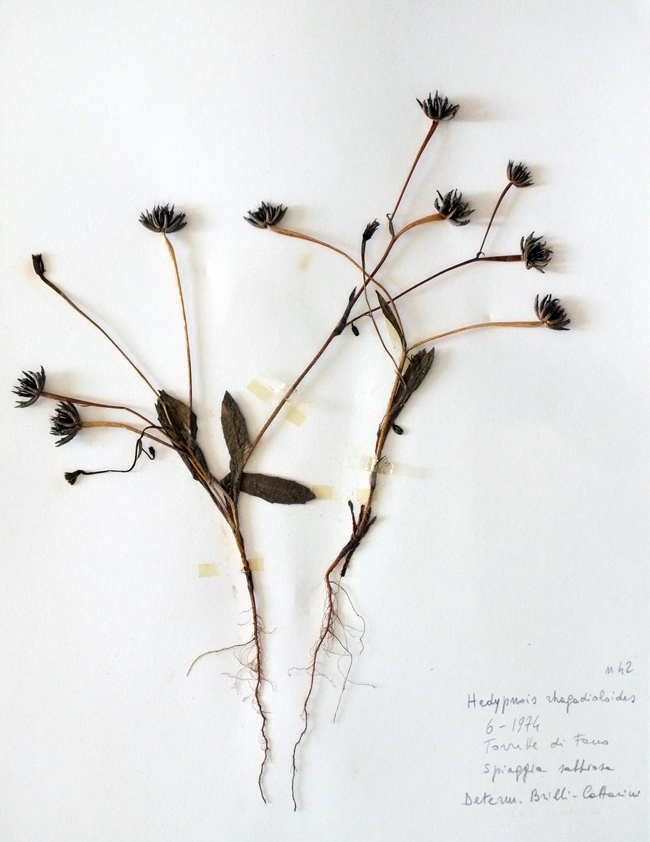 Hedypnois rhagadioloides (Erbario L. Poggiani), spiaggia di Torrette di Fano, giugno 1974