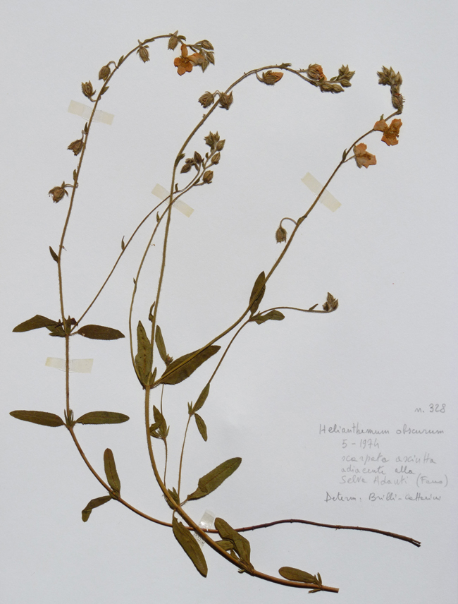 Helianthemum nummularium obscurum (Erbario L. Poggiani), margini del Bosco Adanti nella valle del T. Arzilla a Fano, 15 maggio 1974