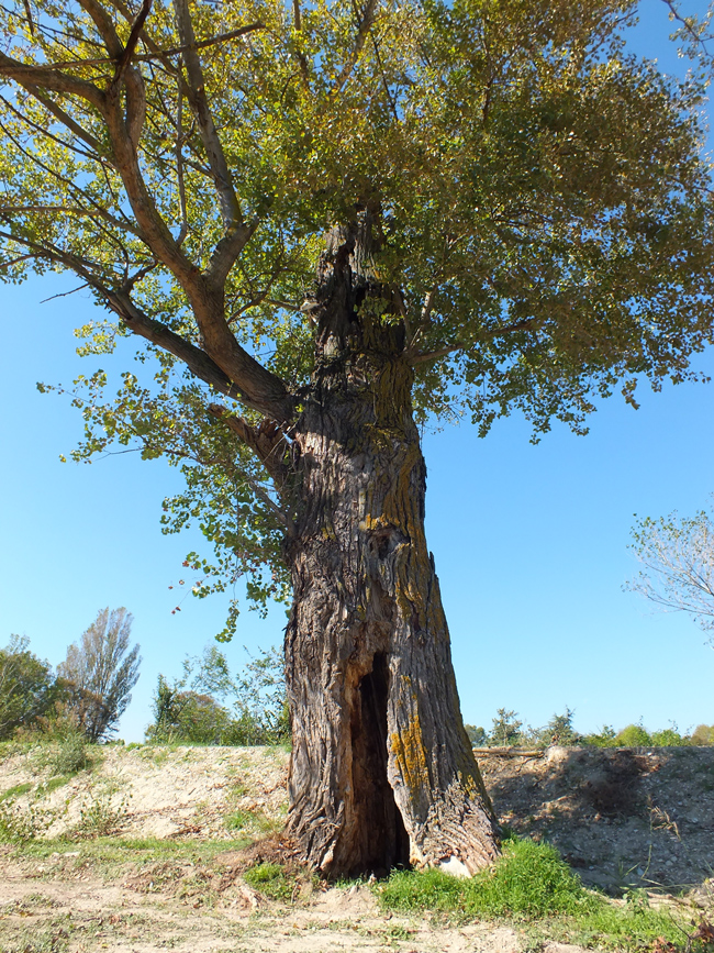 Il grande Pioppo nero del Metauro a Fano, a cui è caduta la parte sommitale ormai secca, maggio 1985
