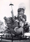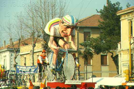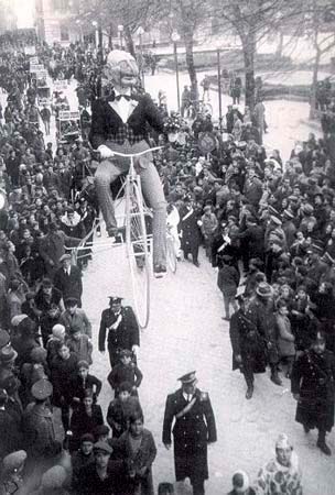 Il pupo rappresenta un gentleman in triciclo, autore Zanetto Orazietti