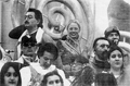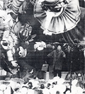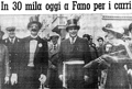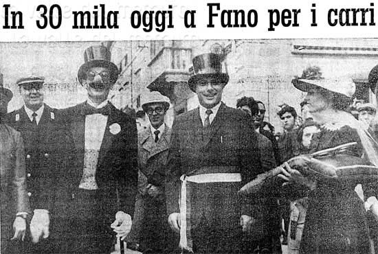 Il sindaco di Fano, Rino Giovanetti, con fascia e cilindro, mentre attende l'arrivo del "personaggio"