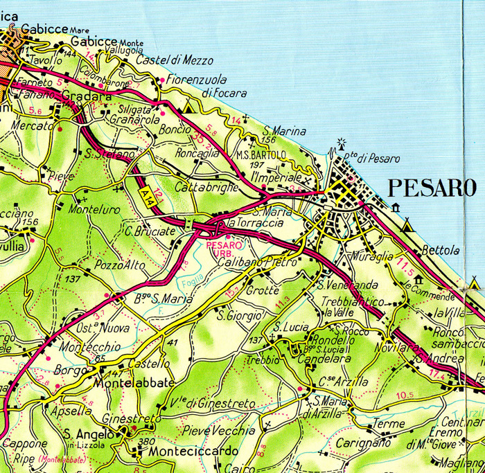 Il territorio comunale di Pesaro (da: Carta stradale Provincia Pesaro e Urbino 1: 150.000, L.A.C., Firenze)