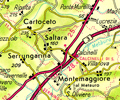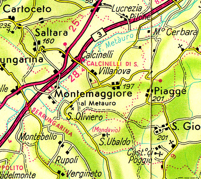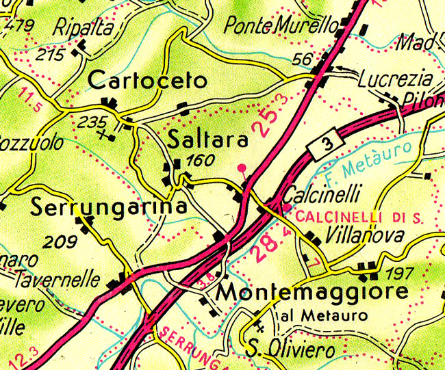 Il territorio comunale di Saltara (da: Carta stradale Provincia Pesaro e Urbino 1: 150.000, L.A.C., Firenze)