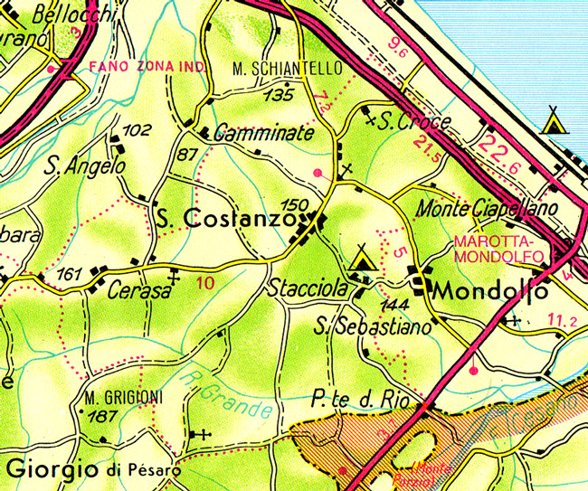 Il territorio comunale di Fano (da: Carta stradale Provincia Pesaro e Urbino 1: 150.000, L.A.C., Firenze)