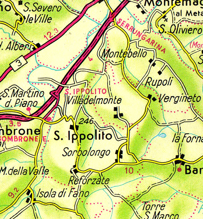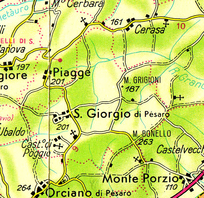 Il territorio comunale di San Giorgio di Pesaro (da: Carta stradale Provincia Pesaro e Urbino 1: 150.000, L.A.C., Firenze)