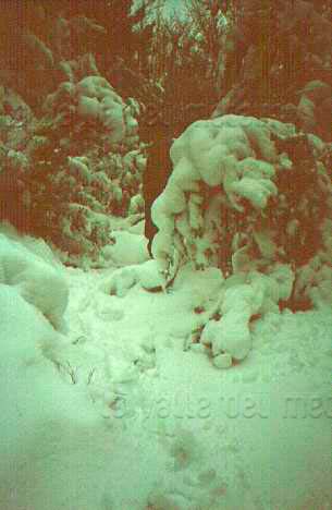 Il sentiero nei pressi del rimboschimento a pini, M. Pietralata (Monti del Furlo), febbraio 2007