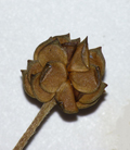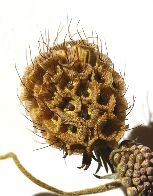 Infruttescenza di Scabiosa (cfr.) columbaria (Erbario L. Poggiani), alveo ghiaioso del F. Metauro a 9 km dalla foce, luglio 1986. Molto probabilmente si tratta di Scabiosa uniseta