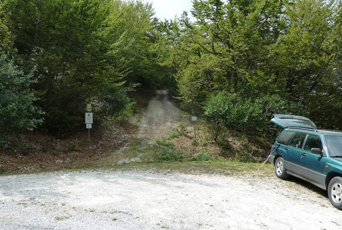 Inizio del sentiero al tornante della strada sul versante Ovest del M. Catria, agosto 2012