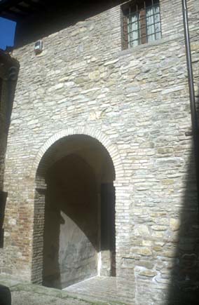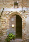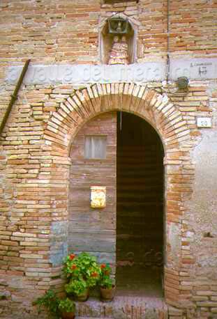 Ingresso di Casa Chiaruccia, sovrastato da una nicchia con una Madonna di Loreto in terracotta, con tracce di pittura rossiccia, 1998