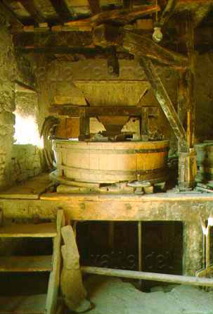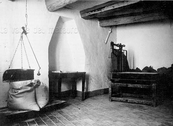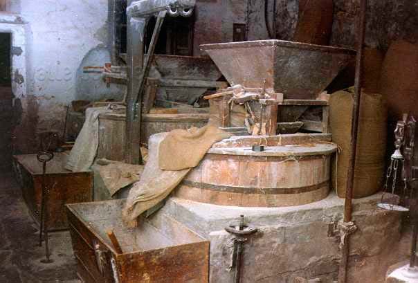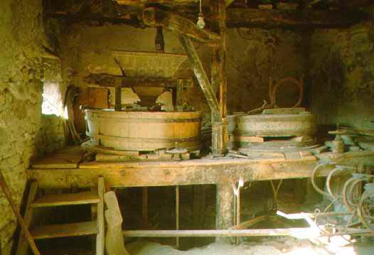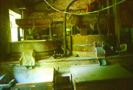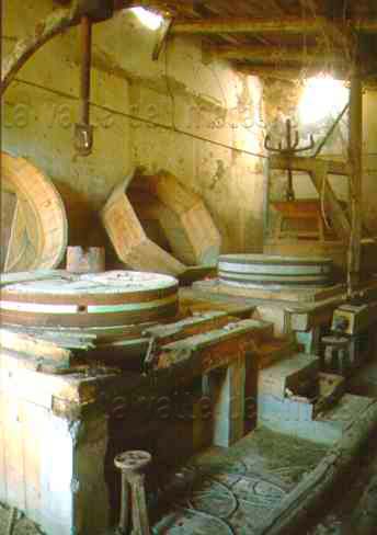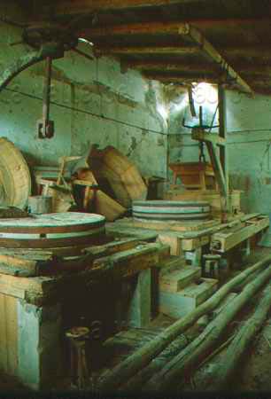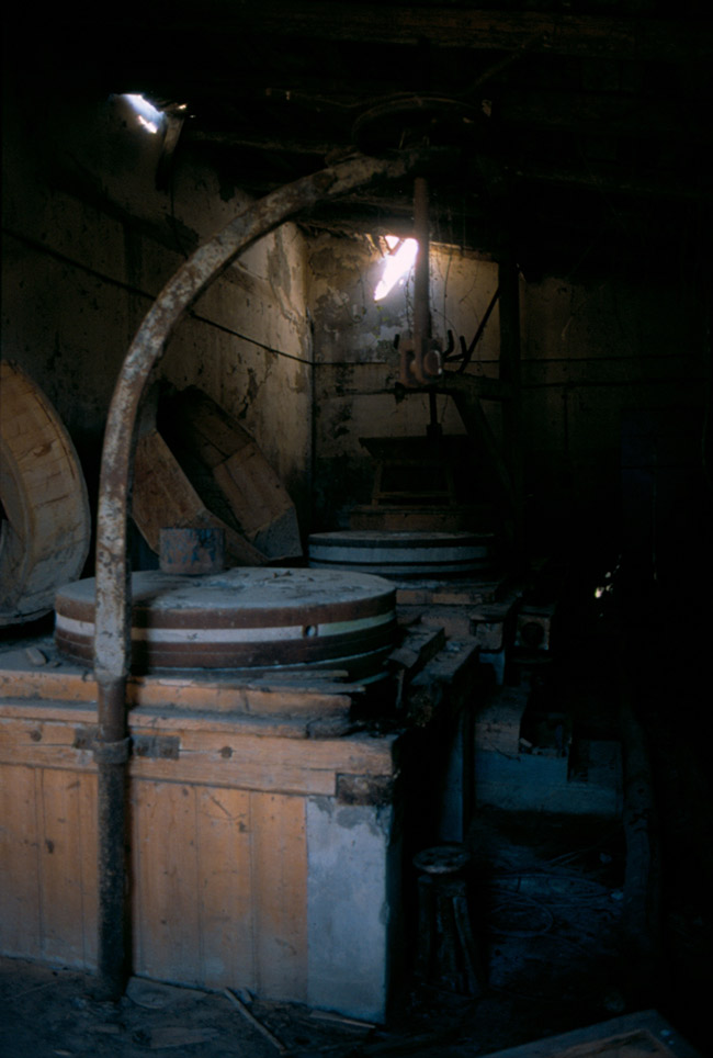 Interno del Mulino del Piano. Sono presenti due macine (palmenti) da 1,3 m, 120-130 giri/min, della Baldeschi & Sandreani, installate nel 1967