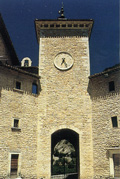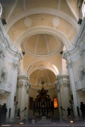 Interno del Santuario del Beato Sante a Mombaroccio, navata maggiore con l'organo