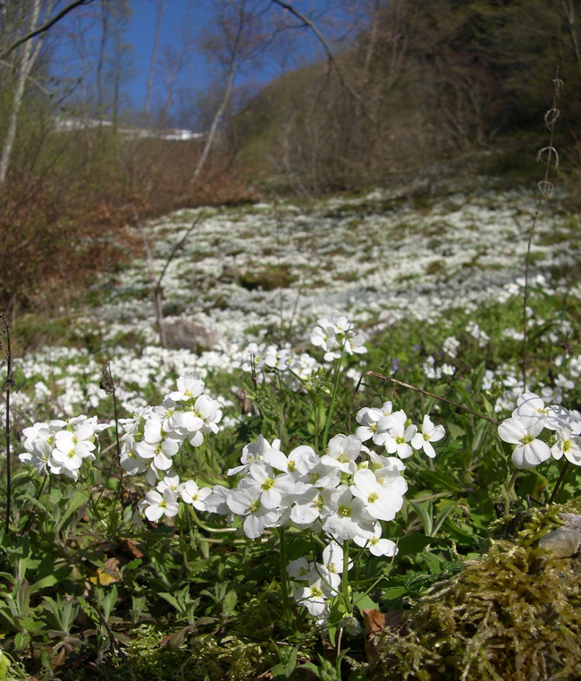 Arabis collina, zona sommitale del M. Paganuccio (Monti del Furlo), aprile 2009