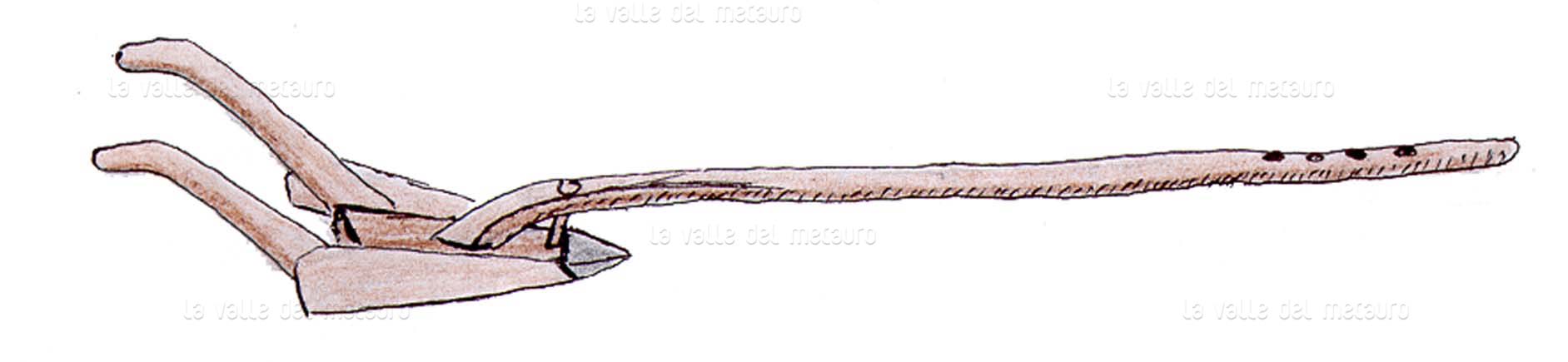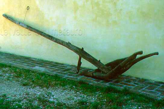 Aratra, assolcatore per piantagioni di granoturco. Periodo di costruzione: 1930-39 circa. Collezione Gianfranco Bisiccia, Fossombrone