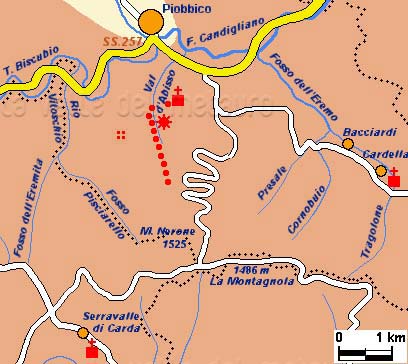 L'itinerario della Val d'Abisso sul M. Nerone (legenda della carta in scheda introduttiva agli itinerari)