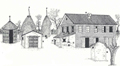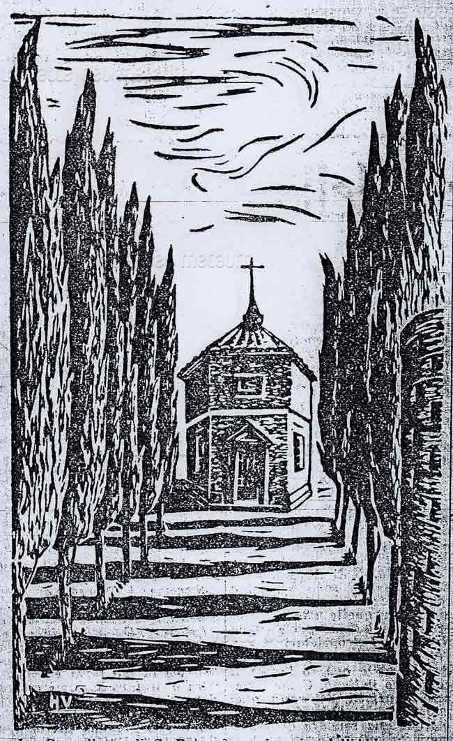 L'Oratorio di S. Paternianino in Via dell'Abbazia (dis. di Hermes Valentini, da: Il Giornale dell'Emilia del 10-7-1949)