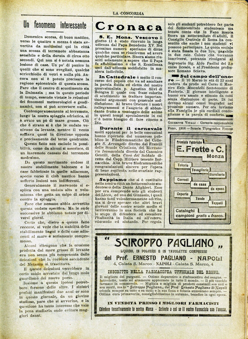 La città di Fano nel 1924 (Pianta schematica della Città di Fano per la Guida Fanum fortunae di C. Selvelli del 1924)