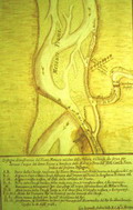 La Chiusa in un disegno del 1748 (G. Jacomelli, Pianta della zona della Chiusa del Fiume Metauro di Fano, con progetto di varianti, 1748 - Biblioteca Federiciana di Fano, Sala Manoscritti, Disegni, B3 - 45)