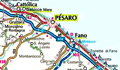 La costa adriatica della Provincia di Pesaro e Urbino da Gabicce alla foce del Cesano (da: Carta Marche 1:200.000, ed. ITER)