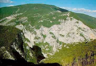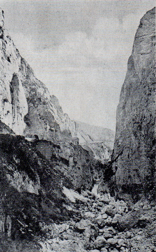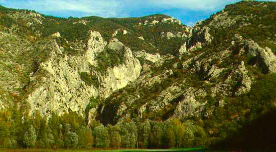 La Gola del Bosso nel tratto da Secchiano a Pianello di Cagli vista dal M. Petrano, settembre 1974